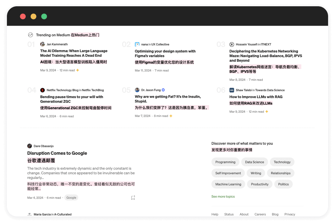 Immersive Translate:Самый популярный плагин двуязычного веб-перевода